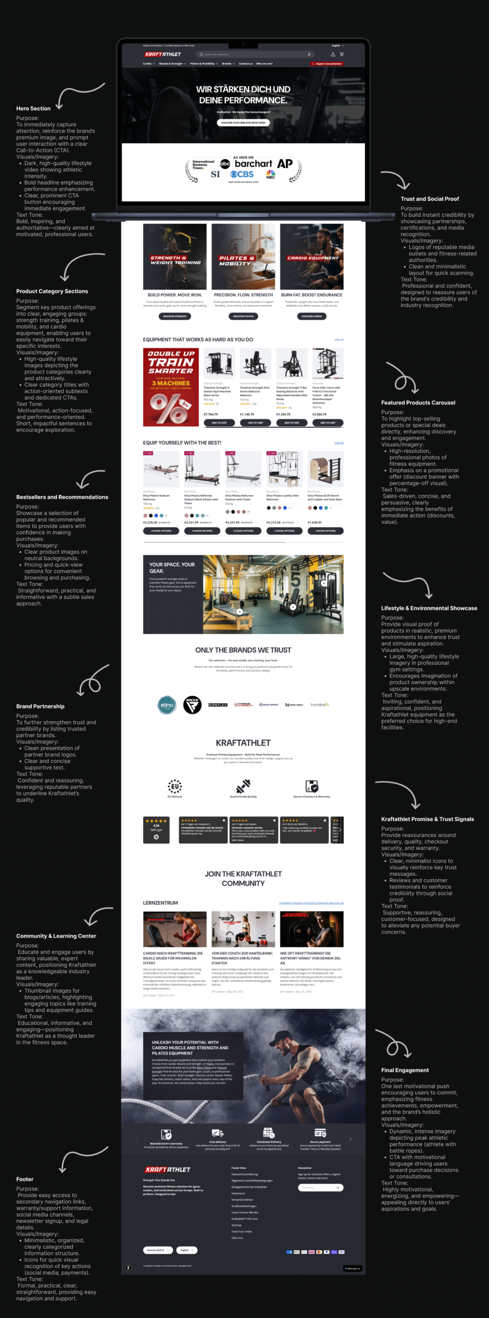 This case study demonstrates transforming Kraftathlet into a premium B2B experience: strong visual consistency, tailored navigation for distinct audiences, persuasive product storytelling, streamlined checkout, and CRM‑driven follow‑ups. Together, these UX/UI decisions deliver professionalism, clarity, and trust—positioning Kraftathlet as a high‑end destination for institutional fitness equipment.